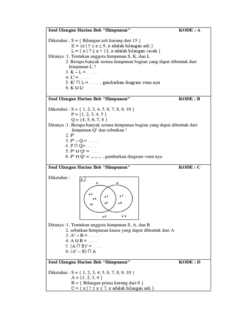 Gambarkanlah Diagram Venn Dari Himpunan Berikut A Bilangan Asli Kurang Dari 20 B Brainly Co Id