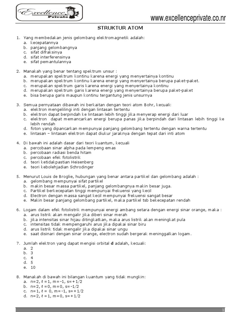 Bilangan Kuantum Bentuk Orbital Atom Contoh Soal