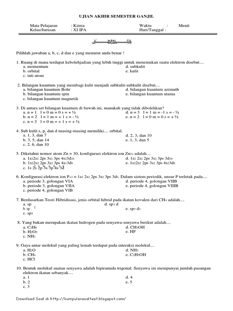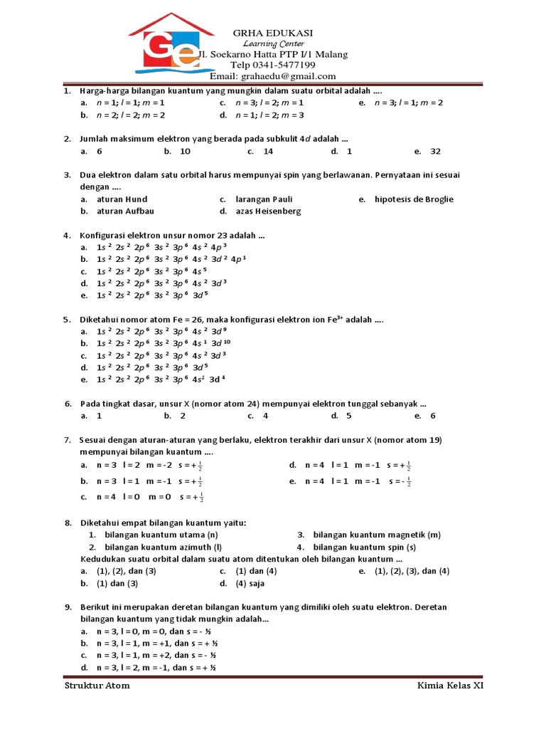 Bilangan Kuantum Bentuk Orbital Atom Contoh Soal