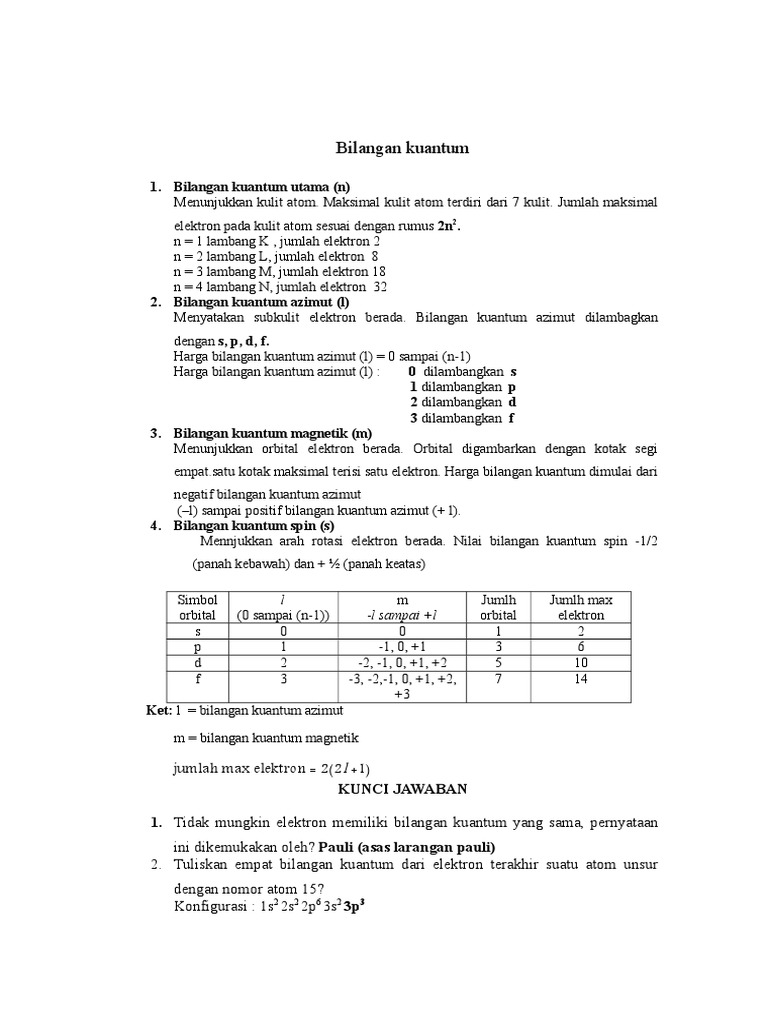 Semakin besar nilai n maka semakin besar ukuran orbital dan semakin tinggi tingkat energinya. Bilangan kuantum utama dapat mempunyai nilai semua bilangan positif yaitu 1234 dan seterusnya. Utama n bilangan yang menjelaskan tingkat energi utama atau kulit atom.