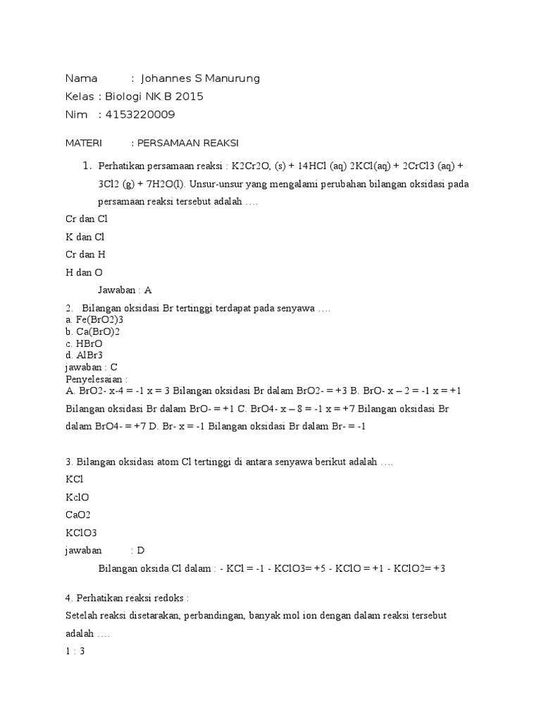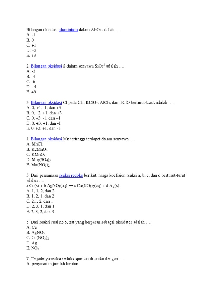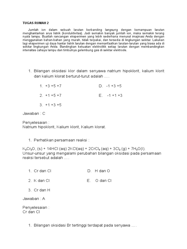 20 Point Nih Hitunglah Bilangan Oksidasi Dari Cl Dalam Senyawa Berikut Kcl Cl2 Kclo3 Kclo4 Brainly Co Id