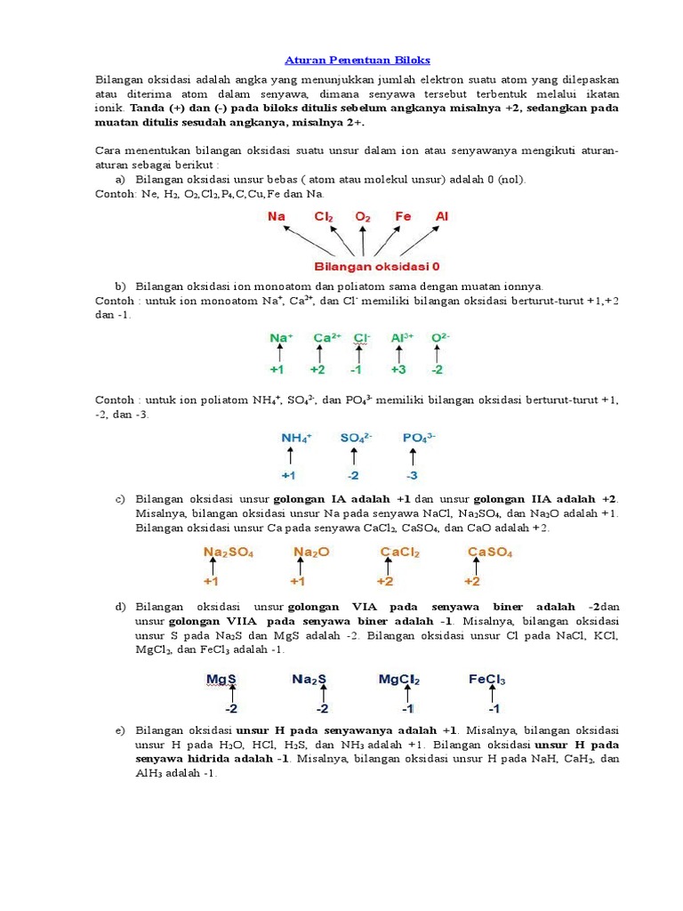 Contoh soal cara menentukan bilangan oksidasi. Jumlah pada bilangan oksidasi biloks unsur unsur pada senyawa adalah 0 nol. Semua senyawa poliatomik asam dengan muatan ion yang bersangkuitan memiliki jumlah aljabar bilangan oksidasi poliotomik adalah nol.