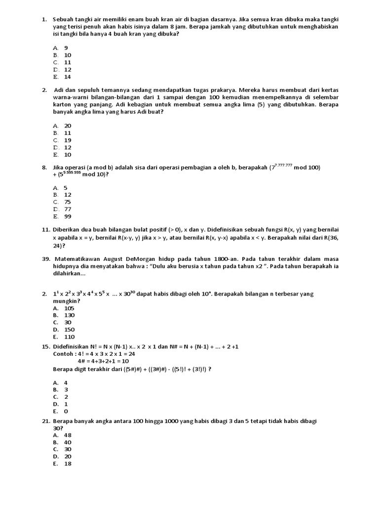 Pdf Pembahasan Olimpiade Sains 2013 Tingkat Kabupaten Kota Bidang Informatika Komputer Bagian A Aritmetika Dan Logika 30 Soal Duabelas Ipa Enam Academia Edu