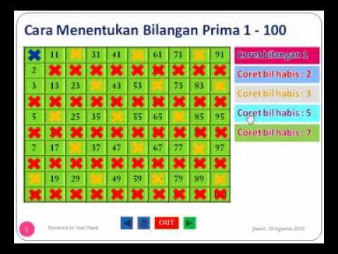 Di antara angka 1 sampai 100 dapat kamu lihat contohnya secara rinci di bawah ini. Buatlah 100 kolom menggunakan tabel 10 x 10. Yang pertama cirikan apabila dalam satuan bilangan bulat tersebut yaitu angka yang terletak pada bagian kanan adalah terdiri dari salah satu angka 1 3 7 atau 9 maka kita sudah menmukan gambaran bahwa bilangan ini bilangan prima kita ditentukan di.