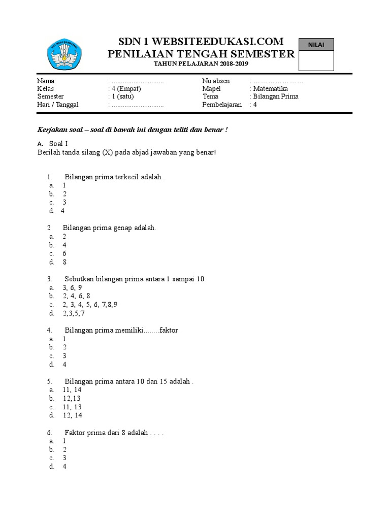 Bilangan Prima Adalah Bilangan Asli Yang Hanya Mempunyai 2 Faktor