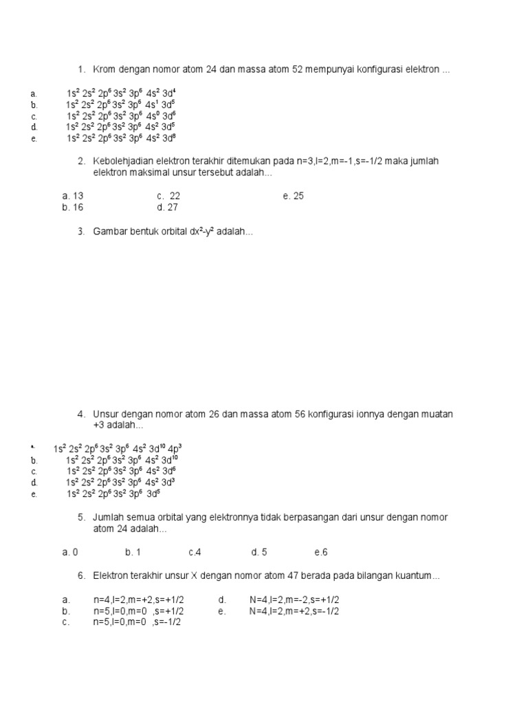 Krom Dengan Nomor Atom 24 Dan Massa Atom 52 Mempunyai Konfigurasi Elektron