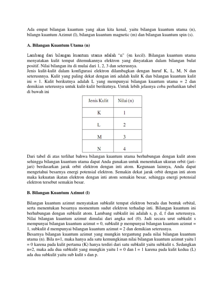 Cara Menentukan Dan Menyatakan Bilangan Kuantum Utama Kuantum Azimut Kuantum Magnetik Dan Kuantum Spin Materiedukasi Com