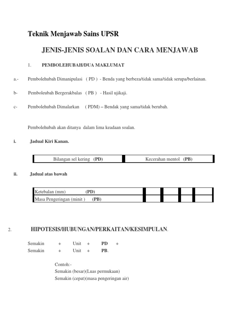 Cara Menjawab Soalan Kesimpulan Sains