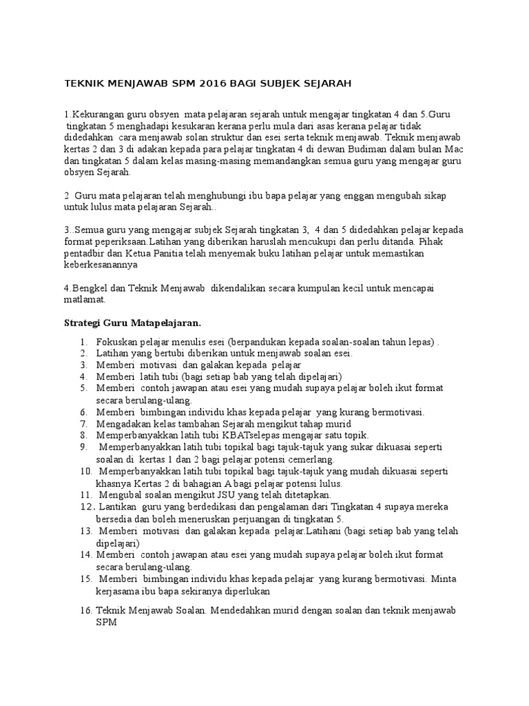 Panduan Teknik Menjawab Sejarah Kertas 3 Spm Tingkatan 4 5 Bumi Gemilang
