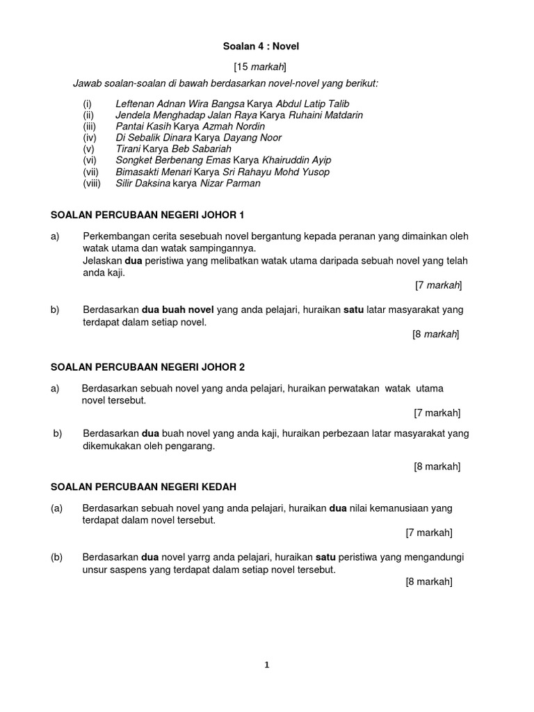 Contoh Soalan Novel Di Sebalik Dinara Spm Soalan Bc Cute766