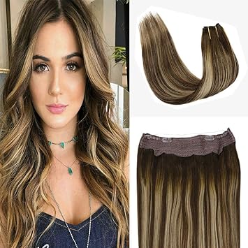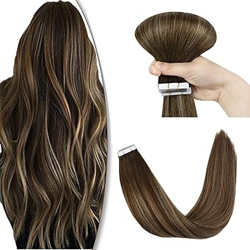 Amazon Com Human Hair Extensions Clip In Light Brown To Blonde Highlights 16 Inch Real Human Hair Balayage Ombre 7 Pcs Full Head Silky Straight Long Clip On Hair Extensions 70g Remy