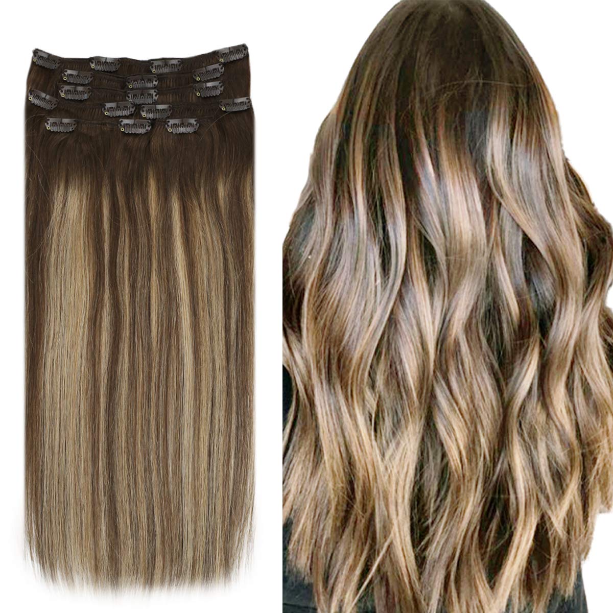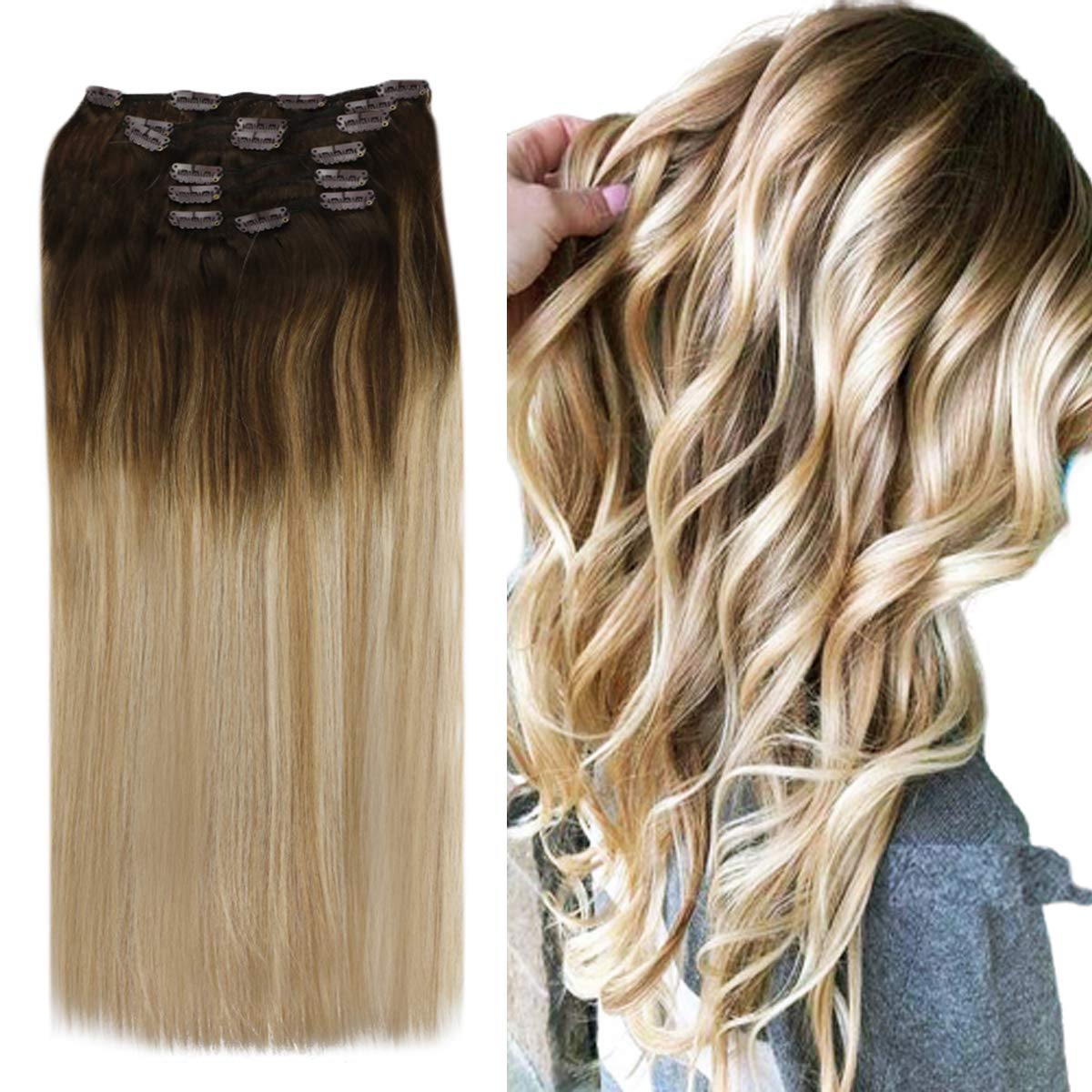 Amazon Com Goo Goo Clip In Human Hair Extensions Remy Ombre Chocolate Brown To Caramel Blonde Balayage Hair Extensions Clip In Straight Real Hair Extensions Natural Hair 7pcs 120g 18 Inch Beauty
