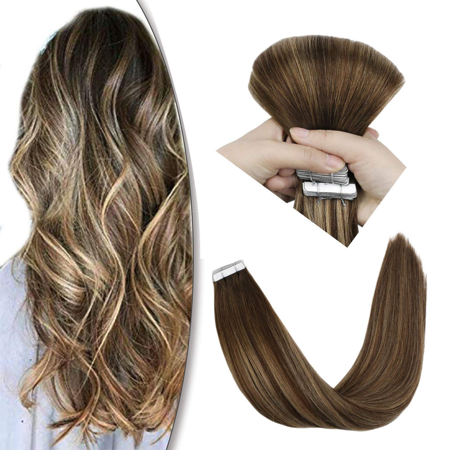 Amazon Com Youngsee Caramel Brown Balayage Remy Tape Extensions Human Hair 18 Inch 20pcs 50g Ombre Dark Brown Mix Caramel Blonde Silky Straight Tape In Hair Extensions Real Human Hair Beauty