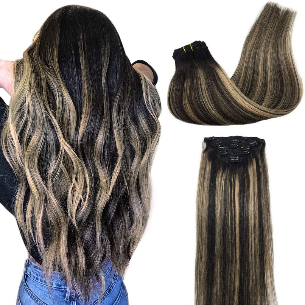Amazon Com Youngsee 22inch Clip In Hair Extensions Human Hair Blonde Straight Clip In Extensions Remy Human Hair Ombre Balayage Dark Brown To Caramel Blonde With Platinum Blonde 120g 7pcs Beauty