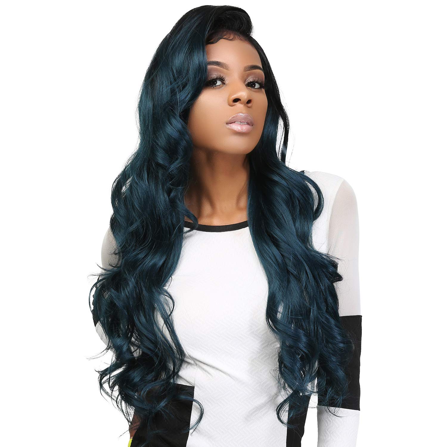 Amazon Com The Stylist Human Hair Blend Lace Front Wig 13x6 Invisible Lace Frontal Wig Nisha Brown Hd Lace Balayage Caramel Beauty