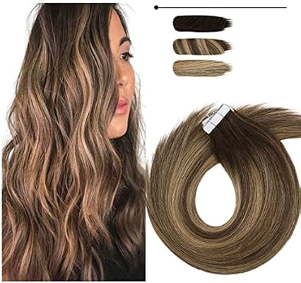 Amazon Com Sunny Skin Weft Hair Extensions Seamless Invisible Tape In Hair Extensions Balayage 4 Dark Brown Fading To 27 Caramel Blonde With 4 Straight Glue In Extensions Remy Human Hair 50g 20pcs Beauty