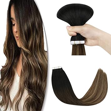 Amazon Com Goo Goo 20pcs 50g Tape In Hair Extensions Human Hair Chocolate Brown To Caramel Blonde Remy Human Hair Extensions Balayage Tape In Real Hair Extensions 22 Inch Beauty