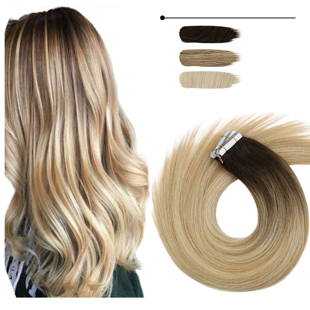 Amazon Com Sunny 18inch Tape In Hair Extensions Blonde Balayage Dip Dyed Dark Brown Fading To Caramel Blonde With Platinum Blonde Remy Human Hair Extensions Straight Tape Ins 20pcs 50g Beauty