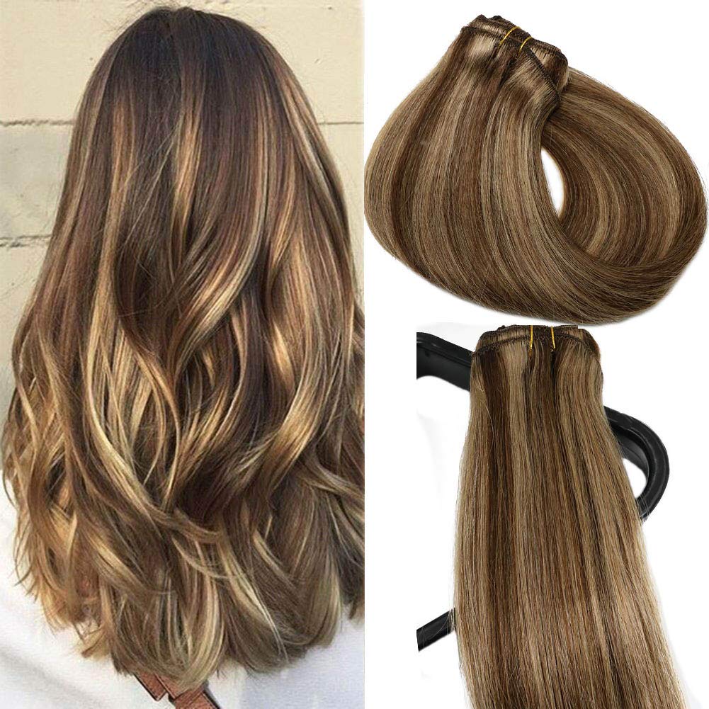 Amazon Com Goo Goo Clip In Human Hair Extensions Remy Ombre Chocolate Brown To Caramel Blonde Balayage Hair Extensions Clip In Straight Real Hair Extensions Natural Hair 7pcs 120g 18 Inch Beauty