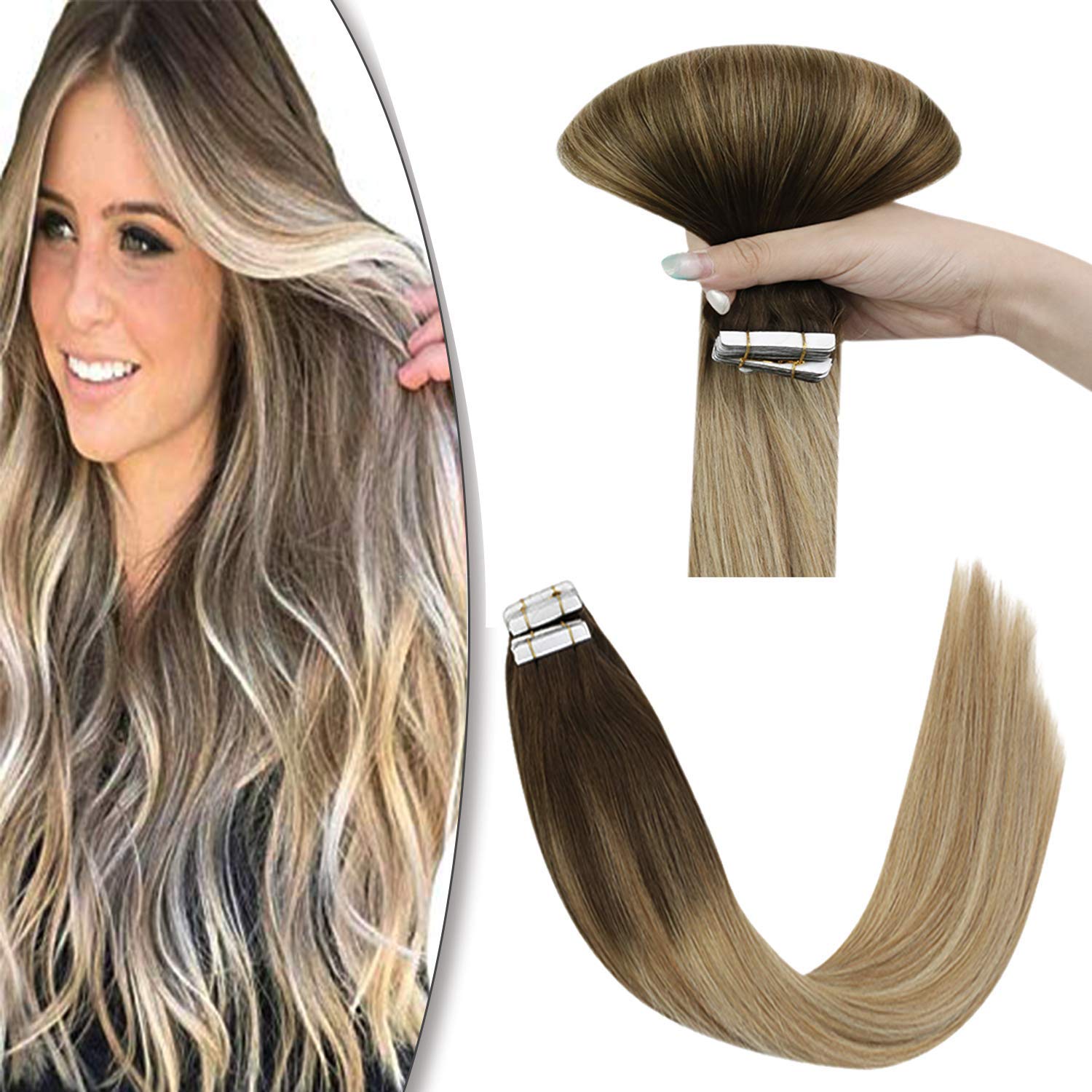 Amazon Com Youngsee 22inch Clip In Hair Extensions Human Hair Blonde Straight Clip In Extensions Remy Human Hair Ombre Balayage Dark Brown To Caramel Blonde With Platinum Blonde 120g 7pcs Beauty