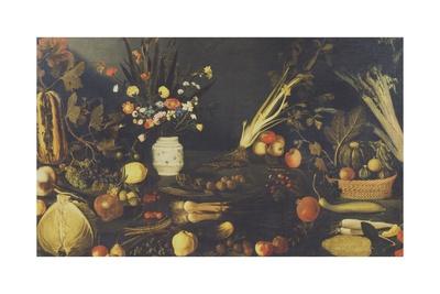 1952 Art Print Still Life Flower Fruit After Caravaggio Original Art Period Paper
