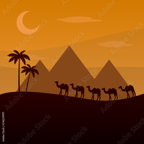 Camel Caravan Going Desert Vector Illustration Stock Vector C Roxanabalint 224484312