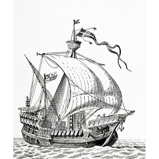 Caravel Ship Lateen Sails For Shoreline Navagation Sailing Ship Model Boat Drawing Model Boats