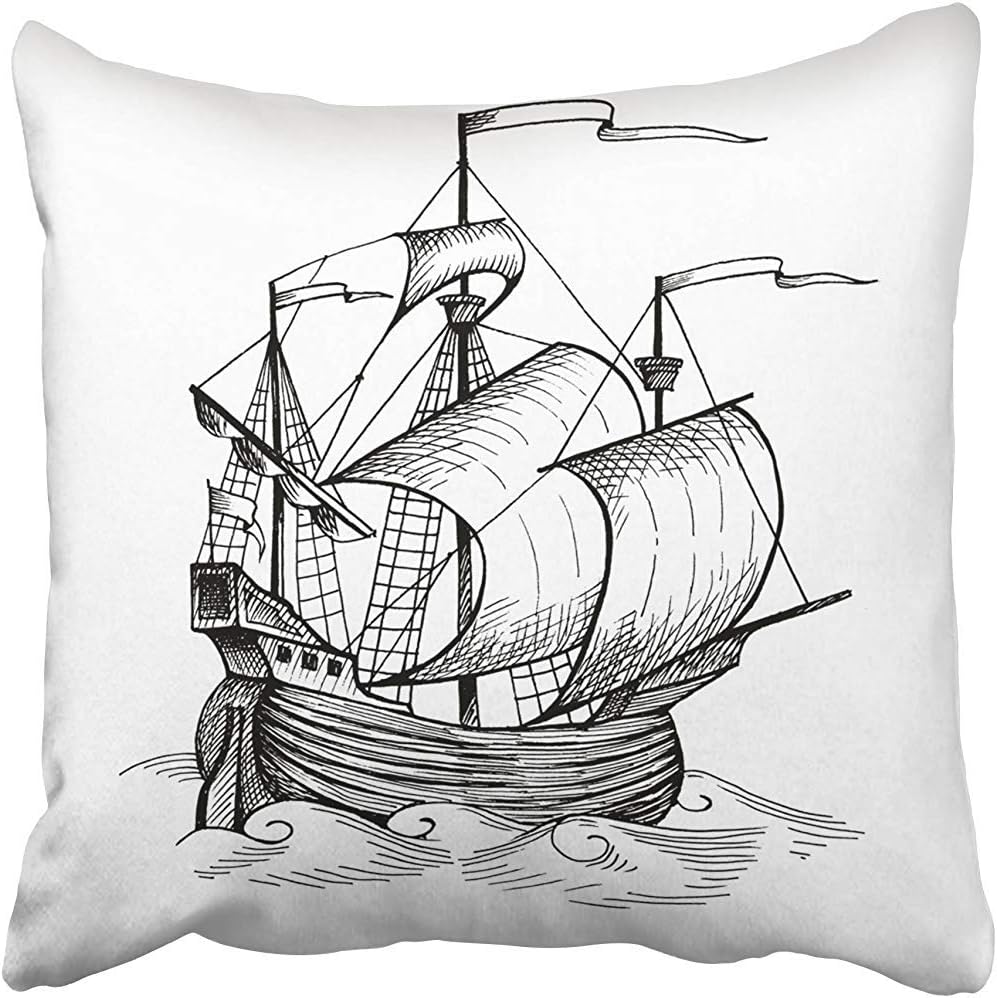Amazon Com Decorative Throw Pillow Covers Cases Drawing Old Caravel Vintage Sailboat Sketch Detail Of The Geographical Maps Sea Ship Ancient Boat 18x18 Inches Pillowcases Case Cover Cushion Two Sided Home Kitchen