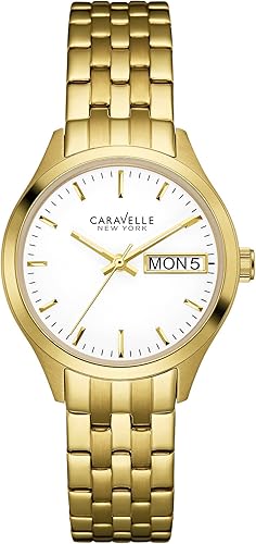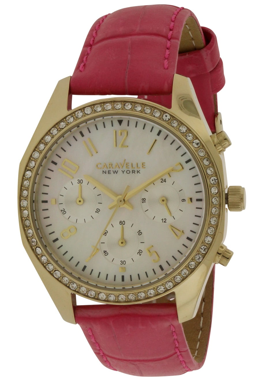 Women S Caravelle New York Crystal Accent Stainless Steel Bracelet Watch 44m109 Bright Gold Target