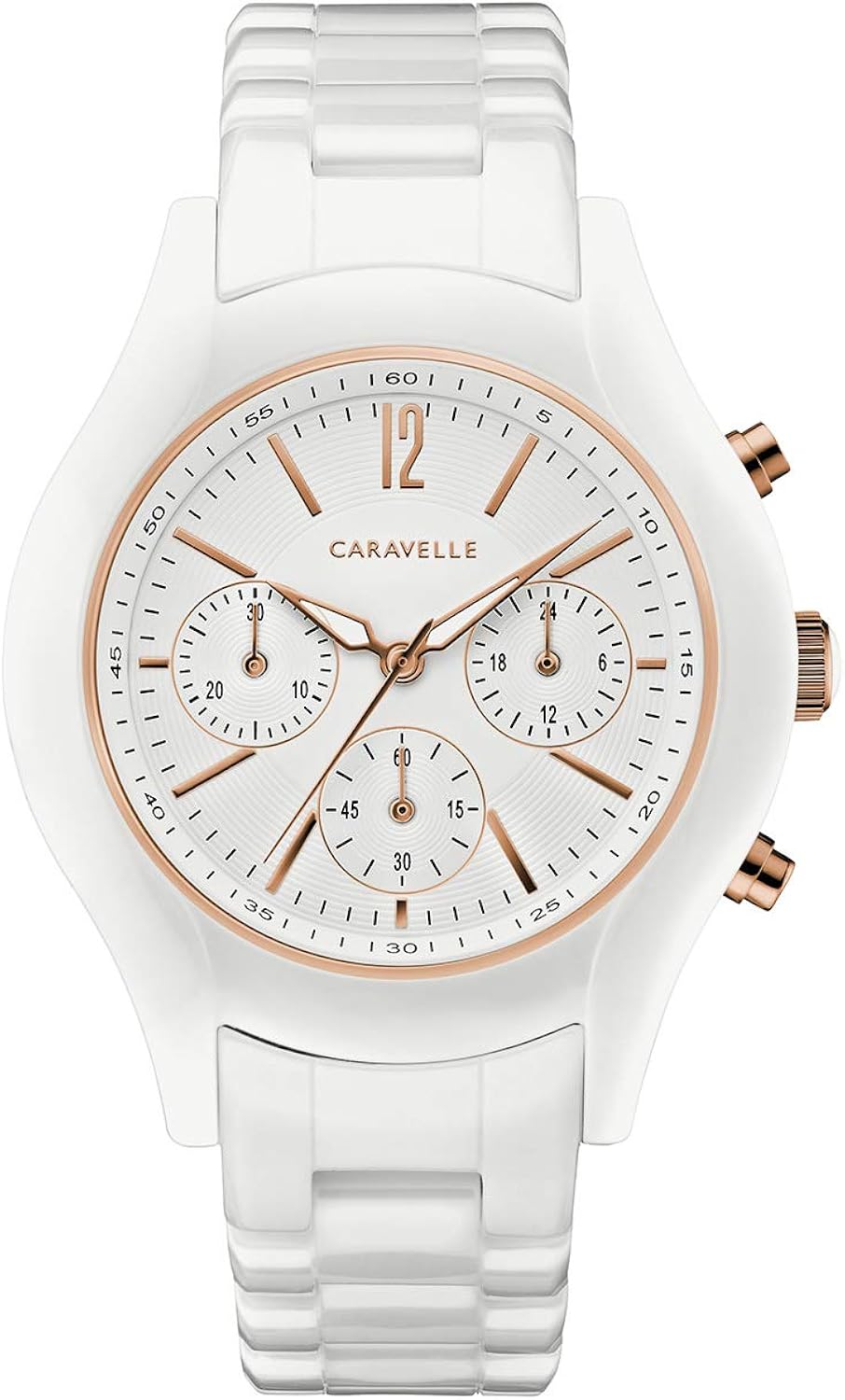 Amazon Com Caravelle Designed By Bulova Women S Stainless Steel Quartz Watch With Ceramic Strap White 18 Model 45l174 Watches