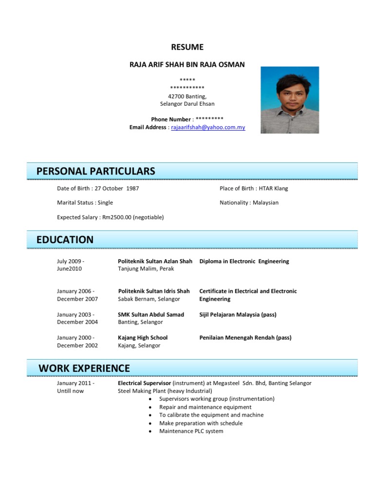Contoh Resume Bahasa Melayu Yang Baik At Esssays Pl Resume Format For Freshers Resume Format Sample Resume Format