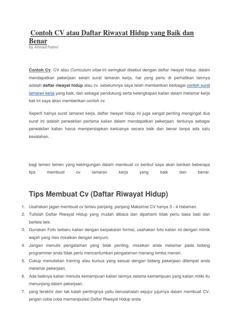 30 Contoh Cv Curriculum Vitae Daftar Riwayat Hidup Yang Baik Dan Benar Mediasiana Com Situs Referensi Belajar Masakini