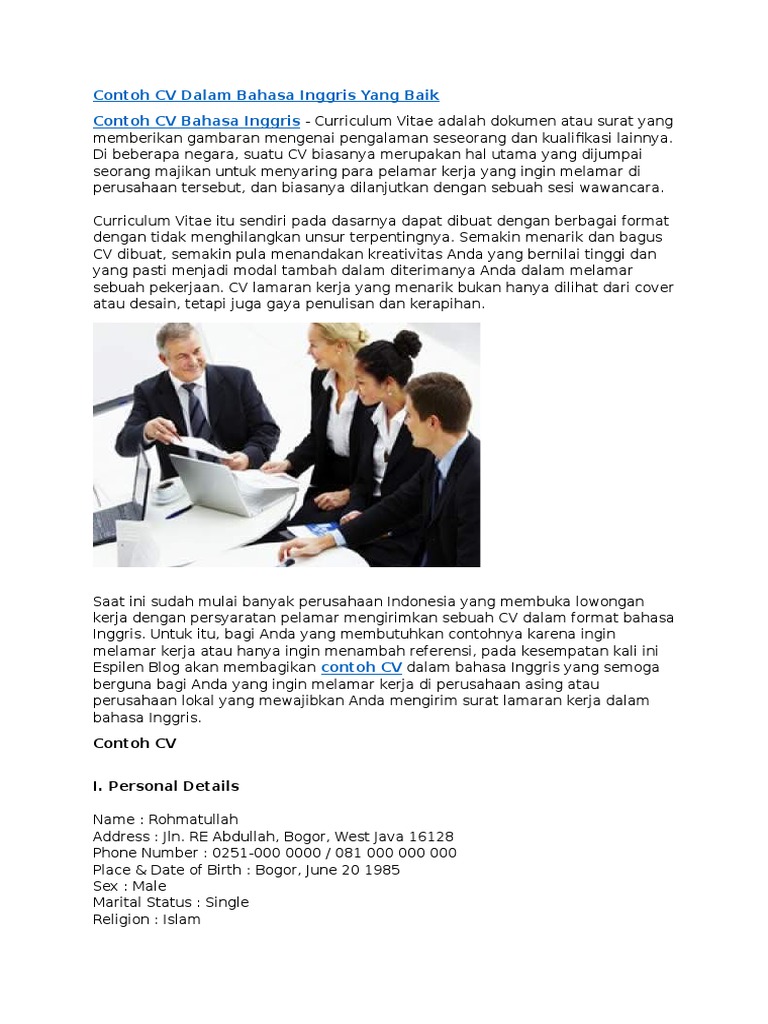 Contoh Cv Bahasa Inggris Lengkap Dengan Terjemahan