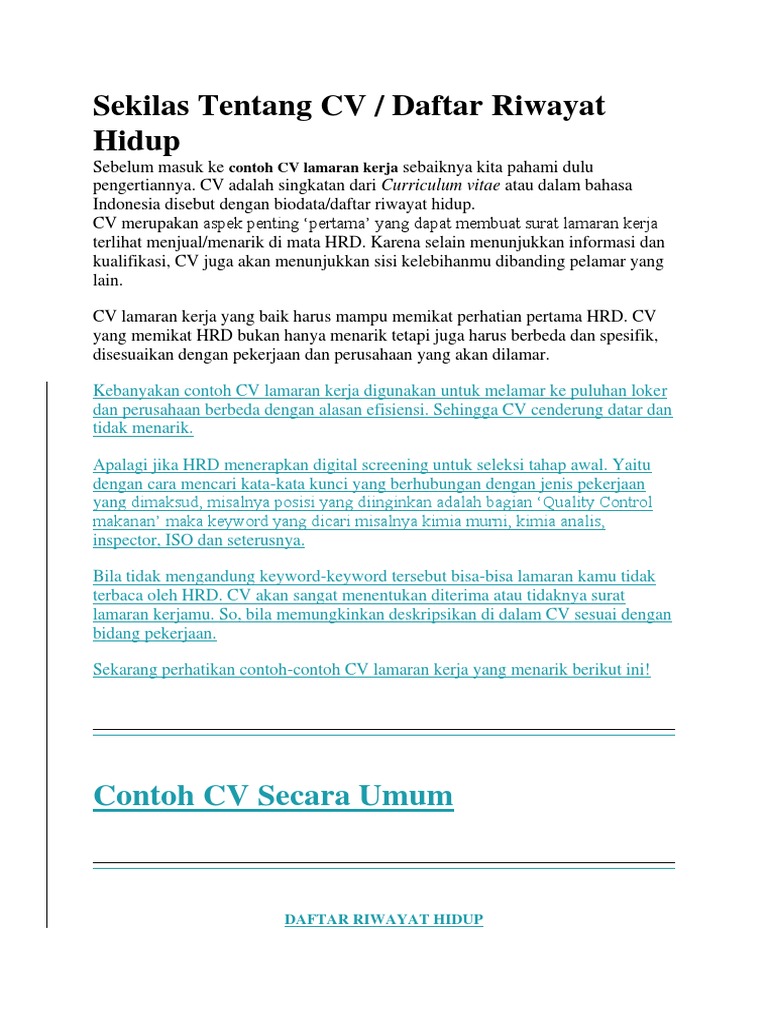 25 Contoh Cv Lamaran Kerja Daftar Riwayat Hidup Yang Menarik Kreatif Websiteku99