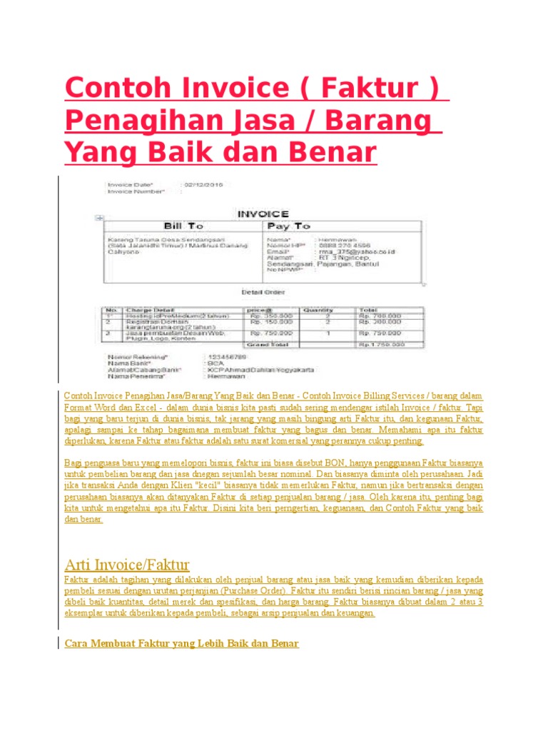 Contoh Invoice Penagihan Penjualan Pembayaran Excel Word Pdf