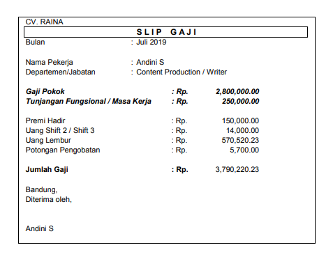 10 Contoh Slip Gaji Karyawan Perusahaan Kurio