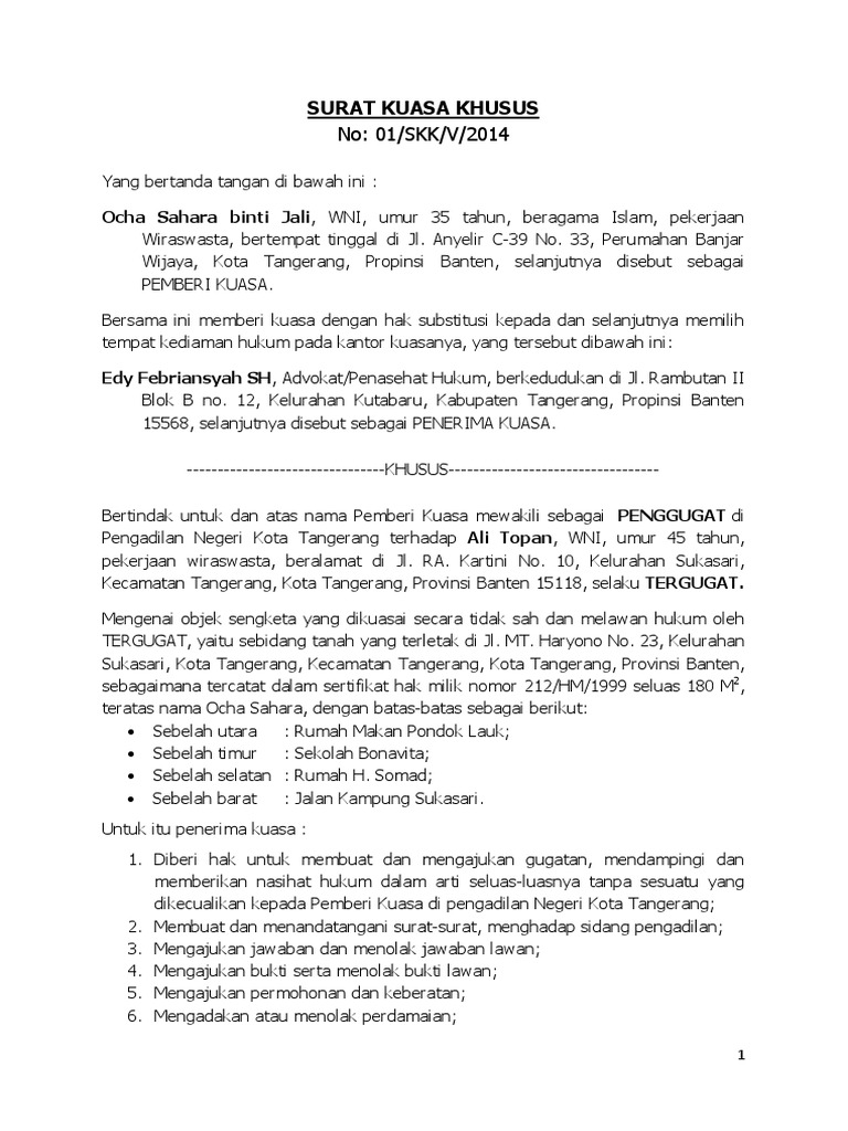 Contoh Surat Contoh Surat Gugatan Perdata Sengketa Tanah Pdf