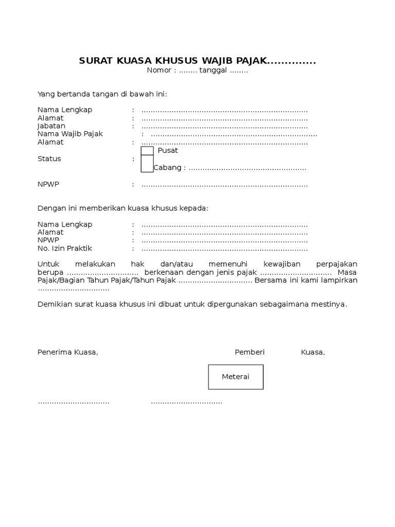 Contoh Surat Kuasa Wajib Pajak Orang Pribadi Grills Zubehor