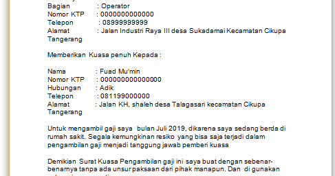 Contoh Surat Kuasa Pengambilan Gaji Karyawan Bloggadogado