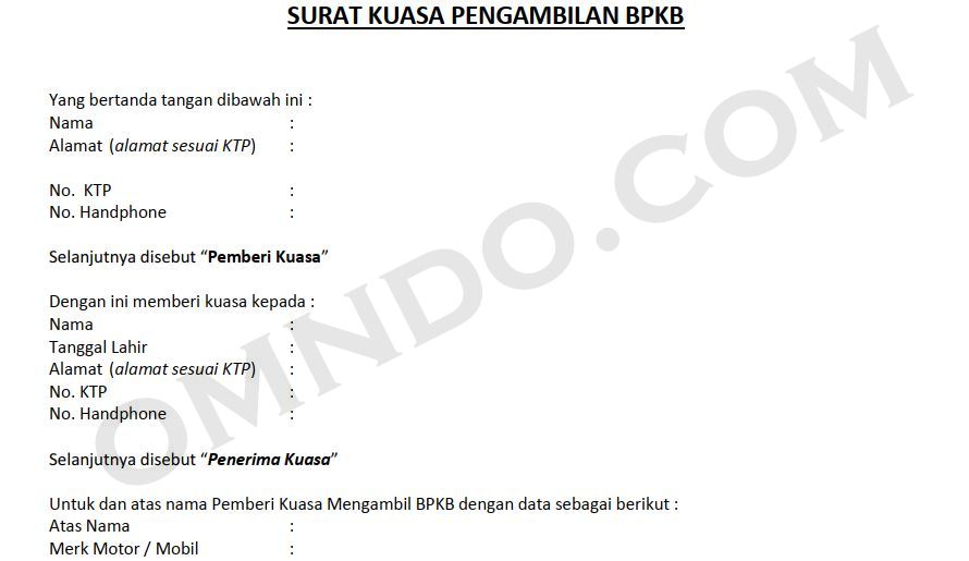 3 Contoh Surat Kuasa Pengambilan Bpkb Stnk Motor Mobil