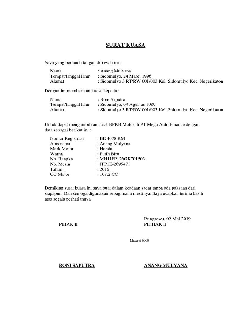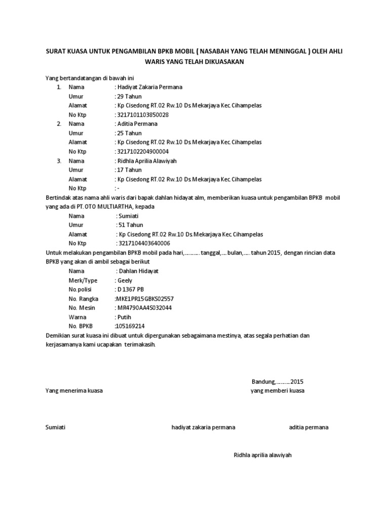 Download Contoh Surat Kuasa Pengambilan Bpkb Motor Docx Surat Kuasa Pengambilan Bpkb Yang Bertanda Tangan Dibawah Ini Selaku Pihak Pertama Nama Course Hero