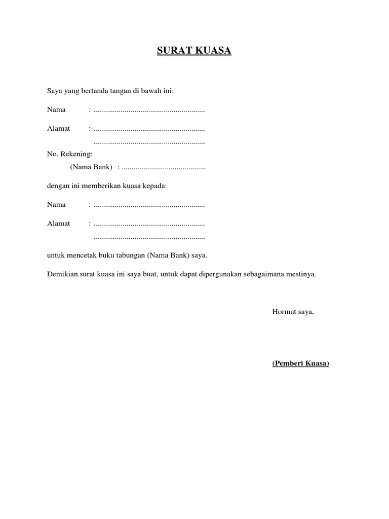29 Contoh Surat Kuasa Berbagai Keperluan Yang Baik Dan Benar