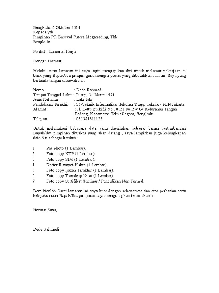 Pdf Lamaran Kerja Yusuf Kurniawan Academia Edu