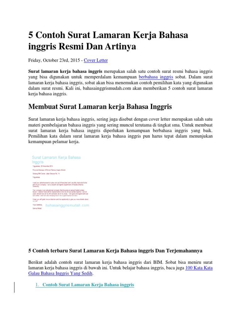 9 Contoh Surat Lamaran Kerja Bahasa Inggris Dan Terjemahannya Lengkap Lowongan Kerja Terbaru Lulusan Sma D3 Dan S1 Semua Jurusan 2020