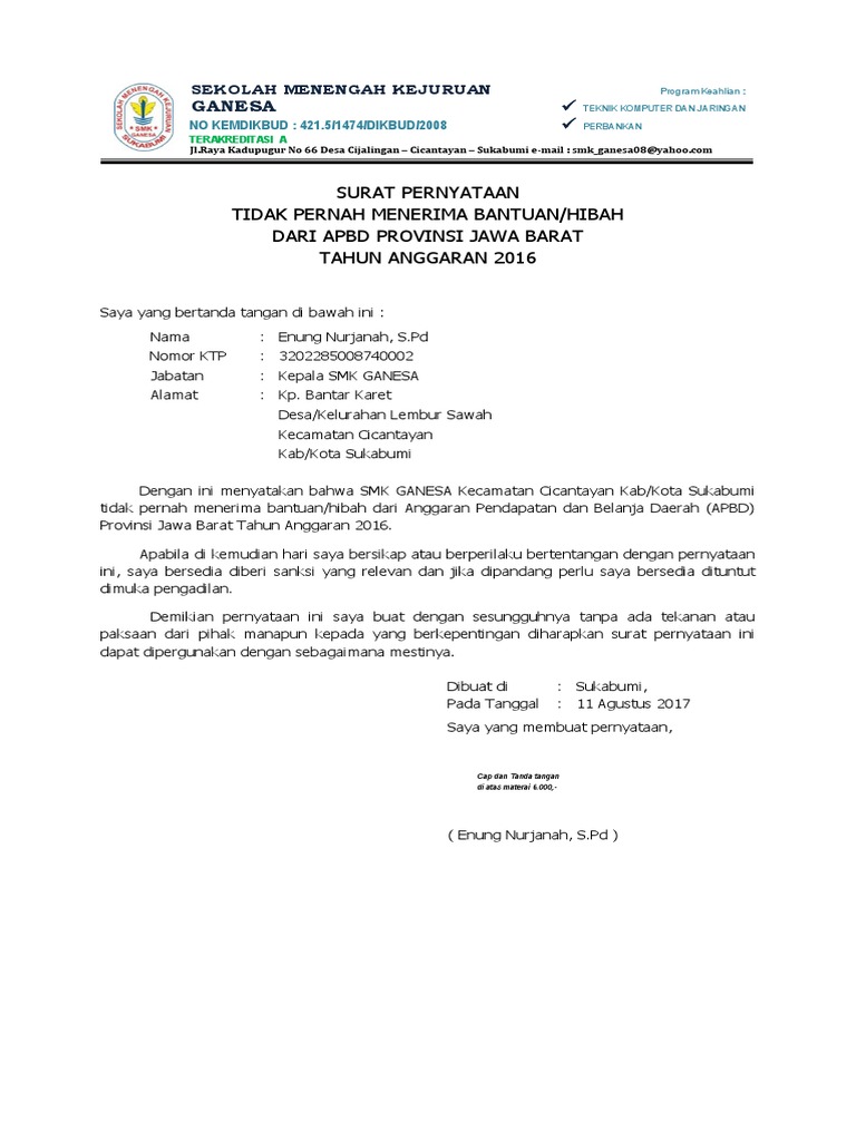 Contoh Surat Pernyataan Tidak Menerima Dana Hibah Tahun Sebelumnnya Microsoft Office