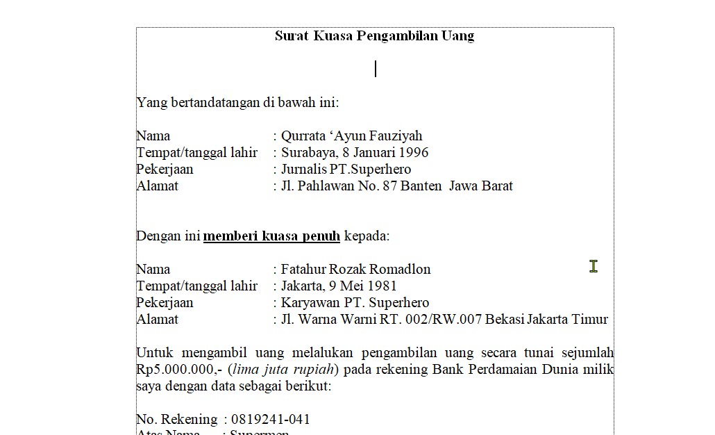 Contoh Surat Kuasa Pengambilan Uang Di Bank 2019 Contoh Surat