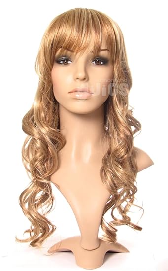 Amazon Com Amazing Long Light Brown Curly Ladies Wig With Blonde And Caramel Highlights And Stunning Side Sweep Fringe Hairpieces Beauty