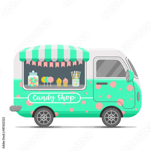 Candy Shop Street Food Caravan Trailer Colorful Vector Illustration Cute Style Isolated On White Background Buy This Stock Vector And Explore Similar Vectors At Adobe Stock Adobe Stock