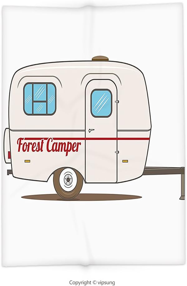 Cartoon Cute Illustration Of A Retro Caravan Open Air Situated Family Trip Concept Simple Living Off Grid Cute Cartoon Caravan Funny Blue Retro Caravan Summer Travel In A House On Wheels
