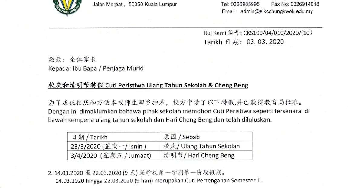 Cuti Sekolah Pertengahan Penggal 1 2020 Bermula Dari 13 Mac 14 Mac Sehingga 21 Mac 22 Mac Mycikgu Net